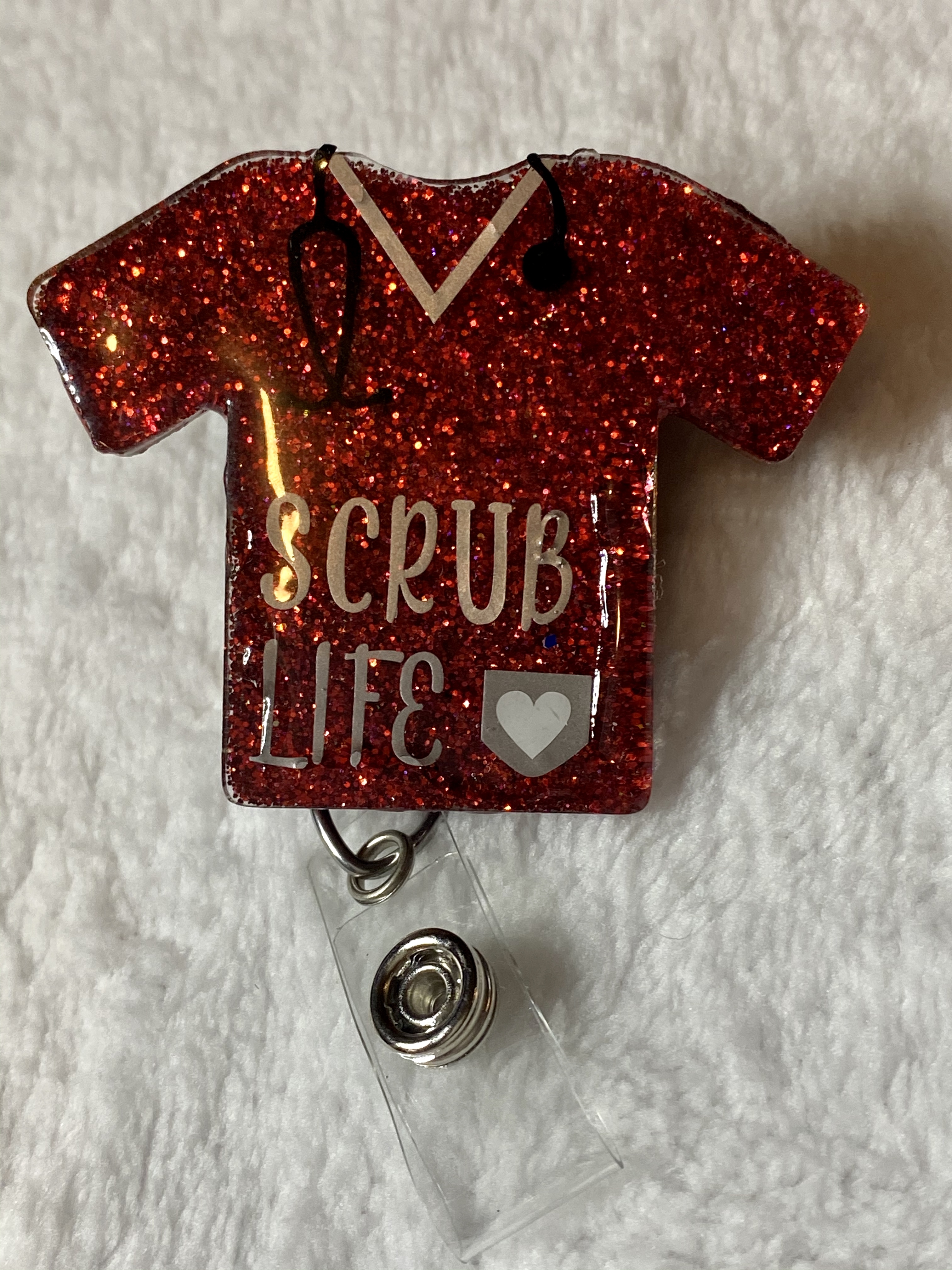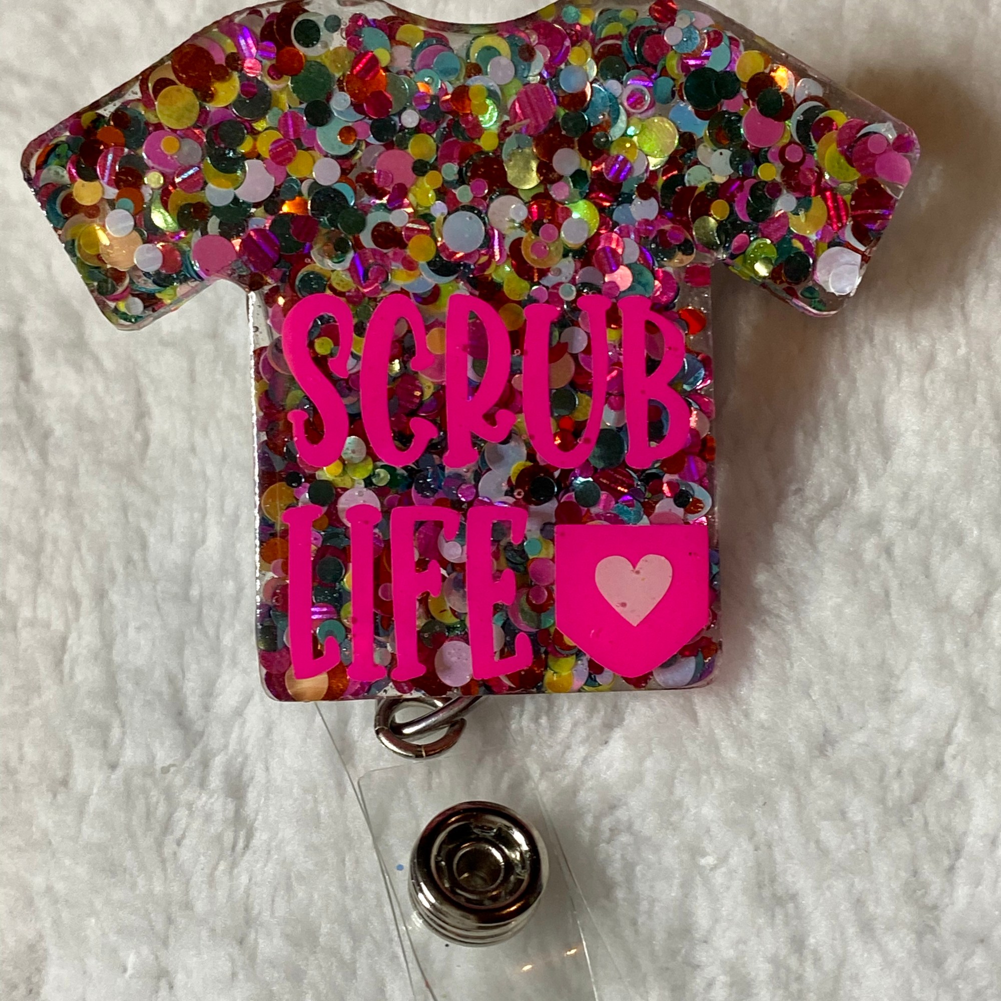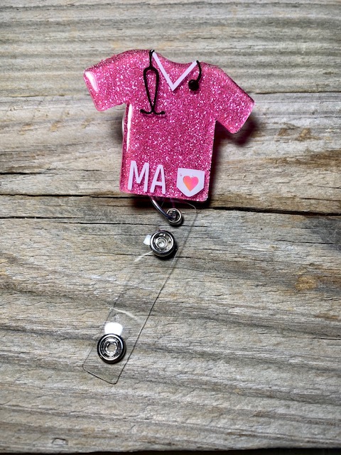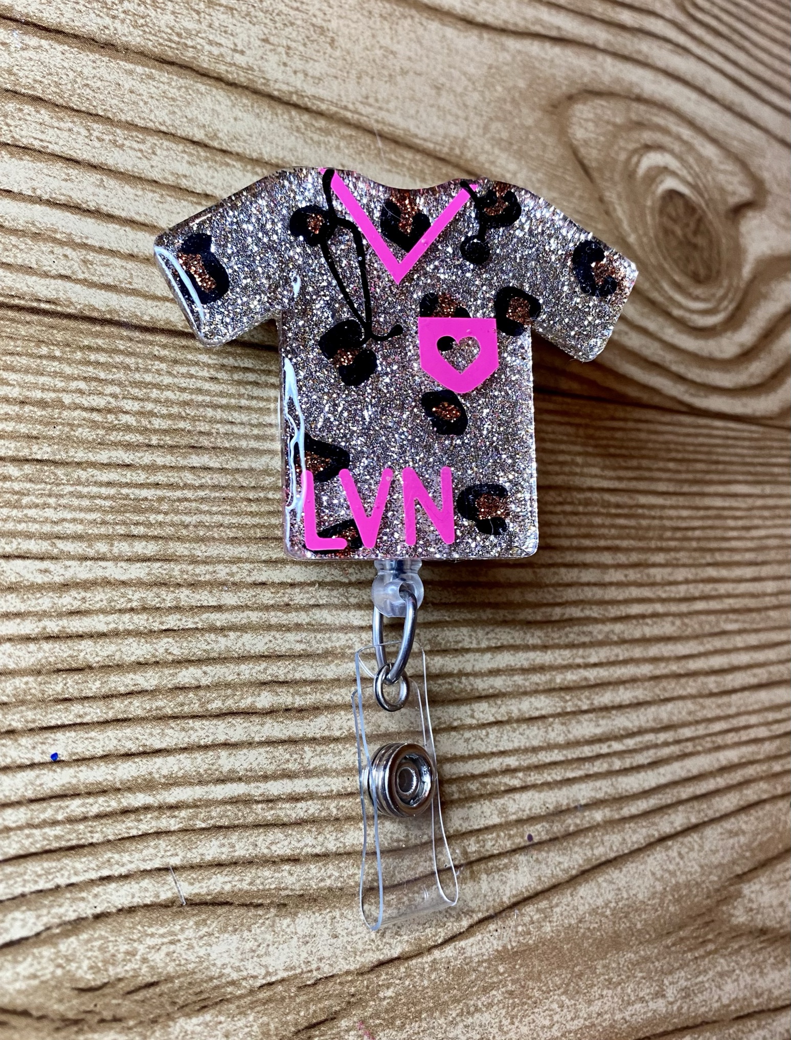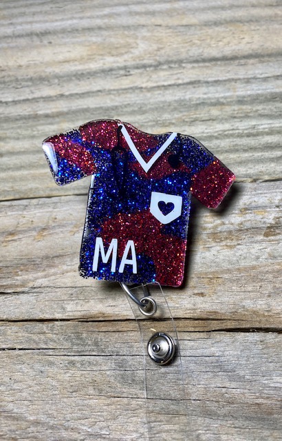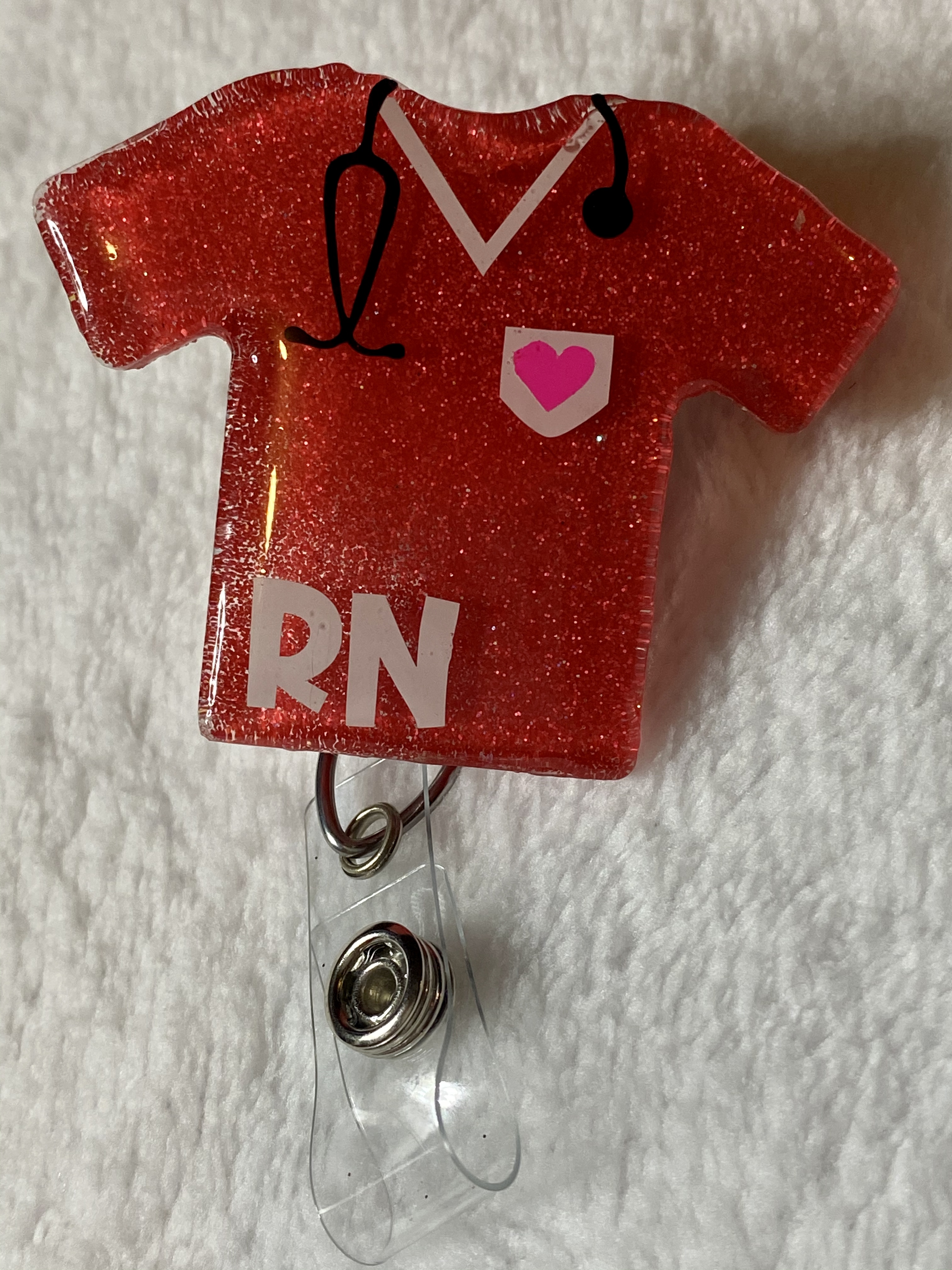 We offer all kinds of fun themes that includes holidays, sports, hobbies, and almost most medical fields. You can choose from many beautiful glitters or non glitter (powder) colors. The badge reels we use are the swivel retractable alligator clip reel and they are suppose to last up to 100,000+ pulls. You have the option to have them be interchangeable (with a low profile heavy duty Velcro) or to have them be permanently attached with E6000 adhesive to the reel.