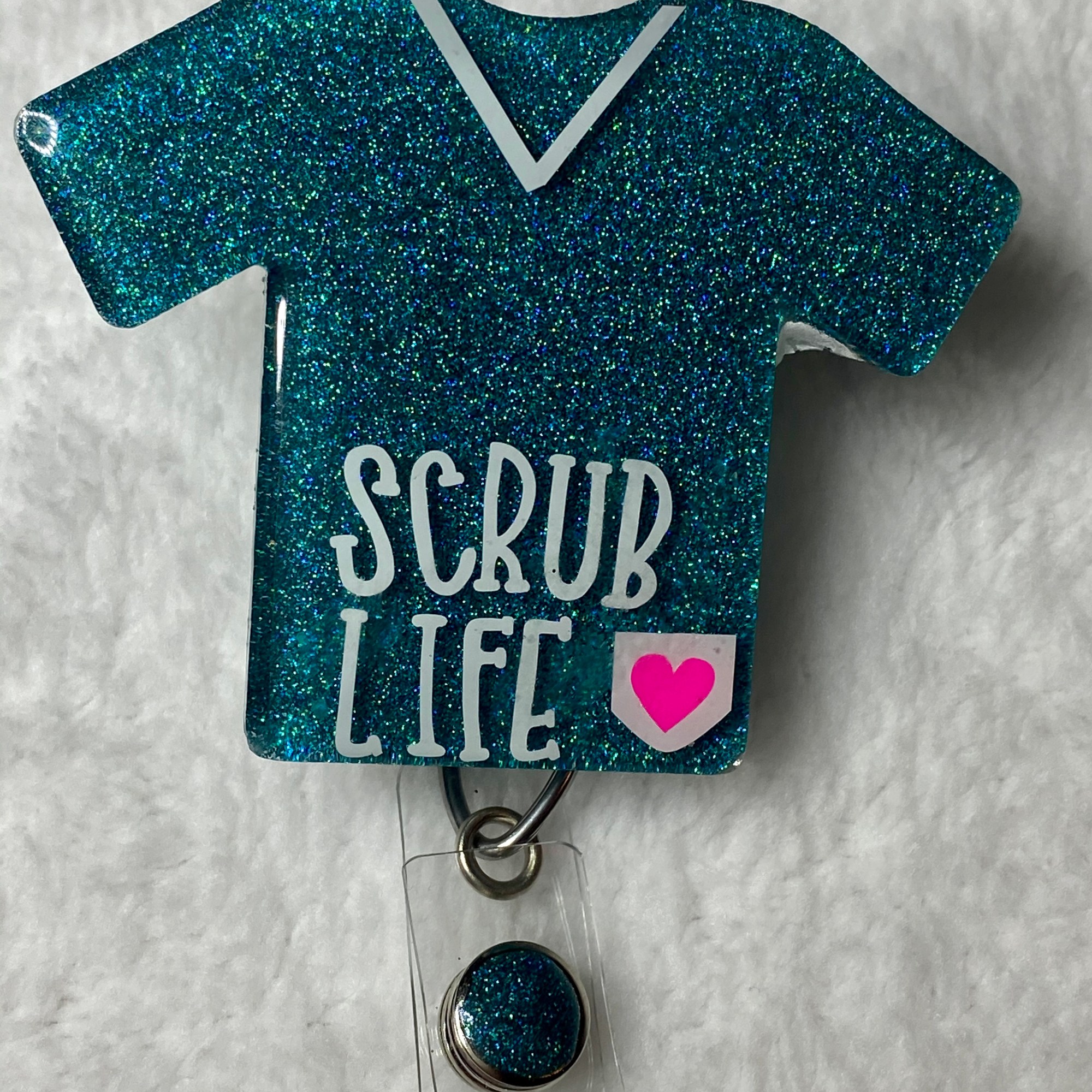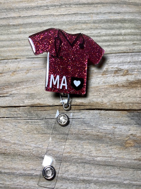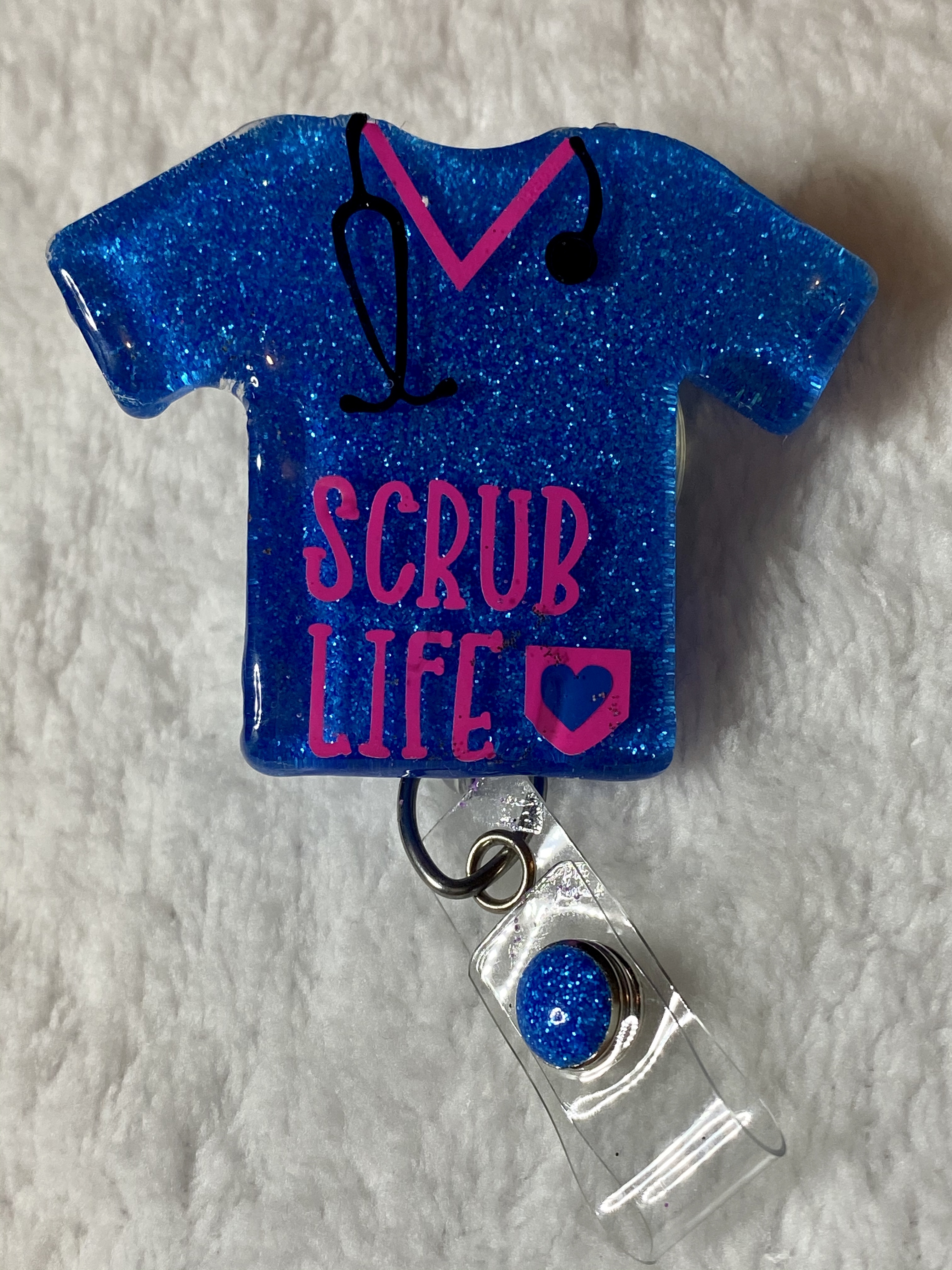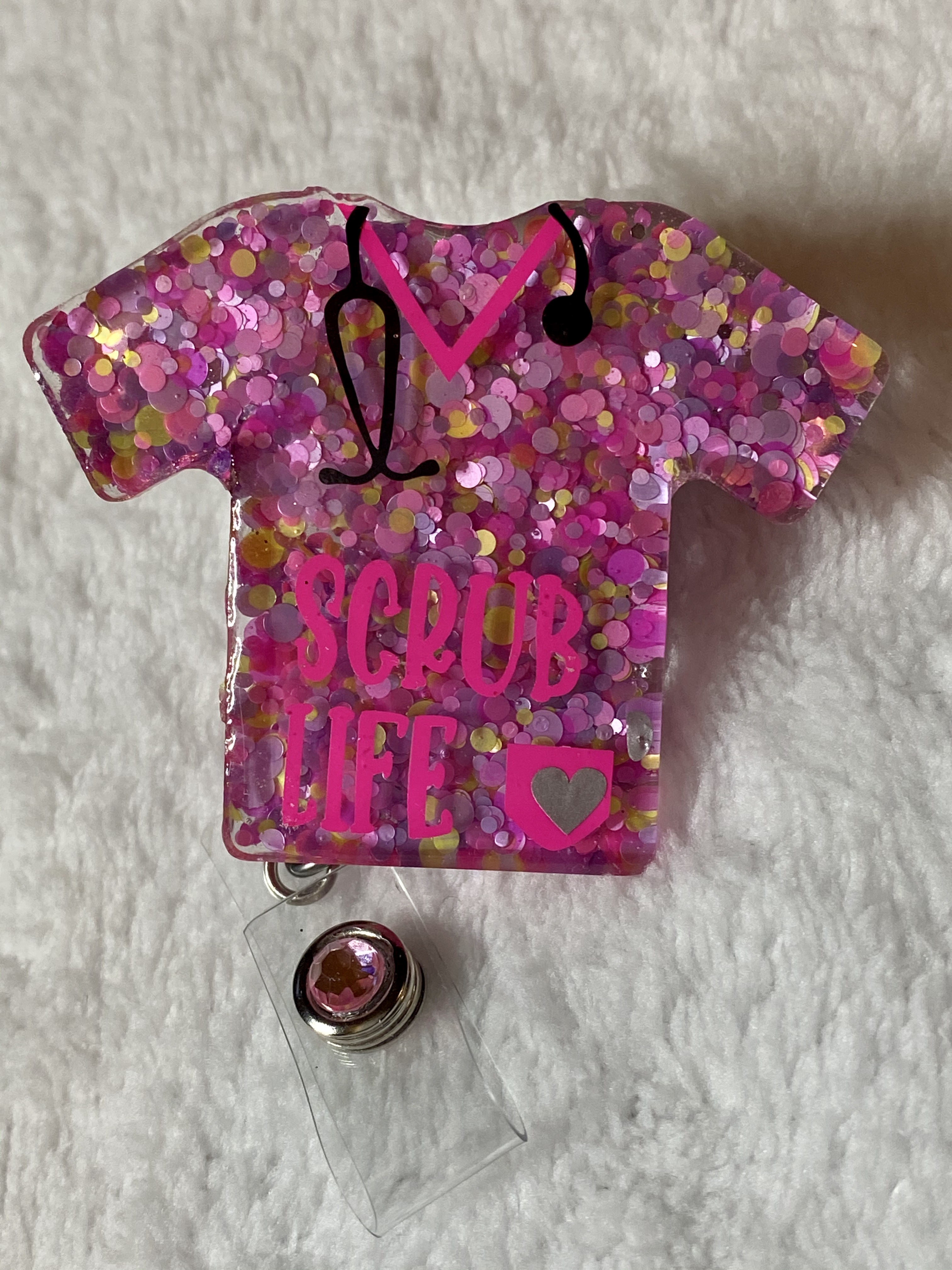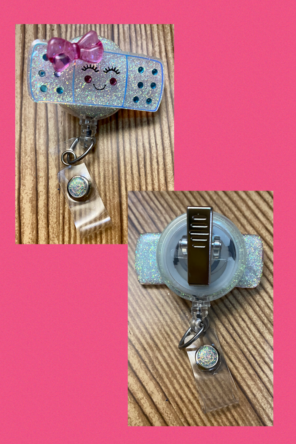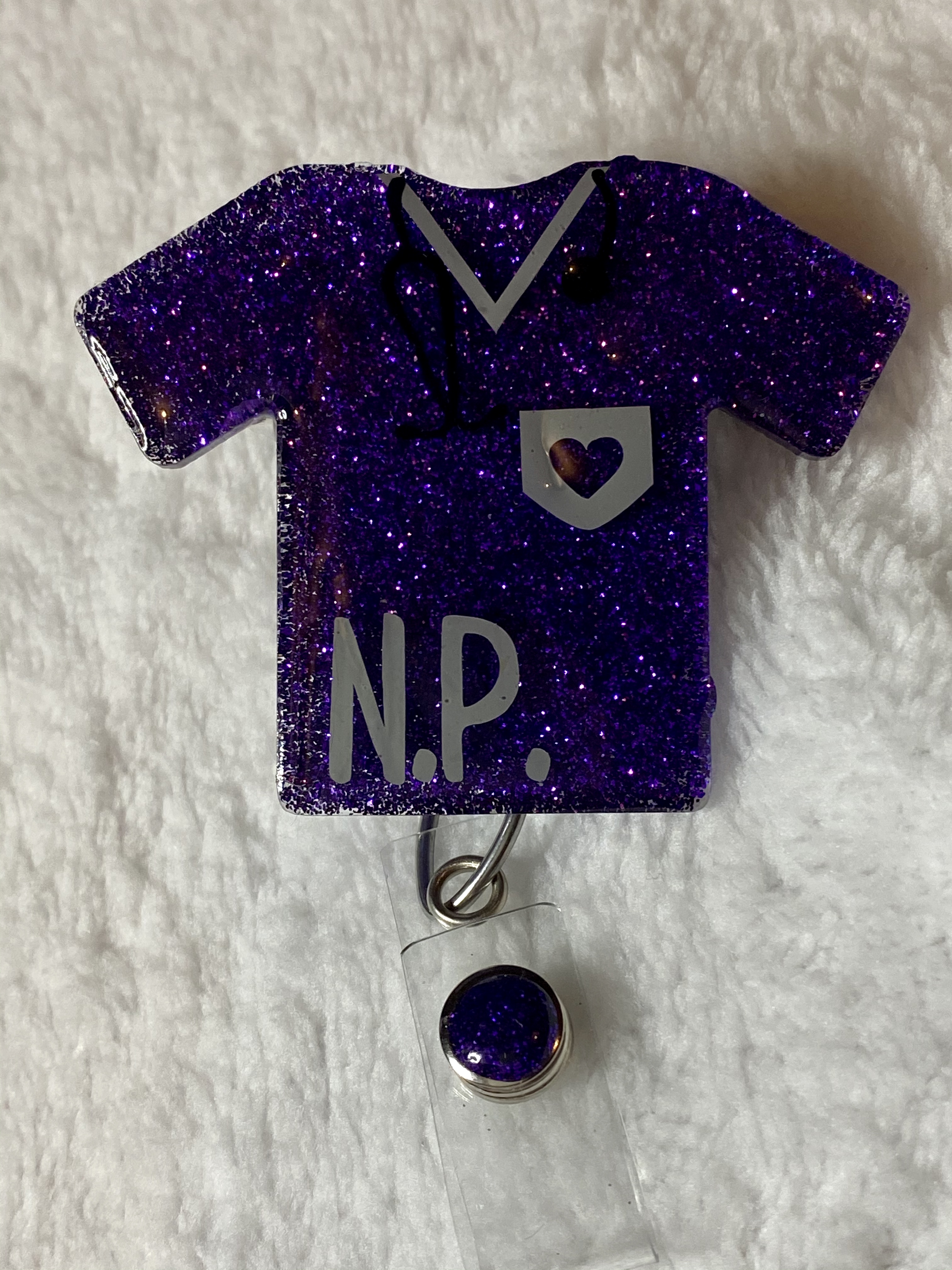 We offer all kinds of fun themes that includes holidays, sports, hobbies, and almost most medical fields. You can choose from many beautiful glitters or non glitter (powder) colors. The badge reels we use are the swivel retractable alligator clip reel and they are suppose to last up to 100,000+ pulls. You have the option to have them be interchangeable (with a low profile heavy duty Velcro) or to have them be permanently attached with E6000 adhesive to the reel.