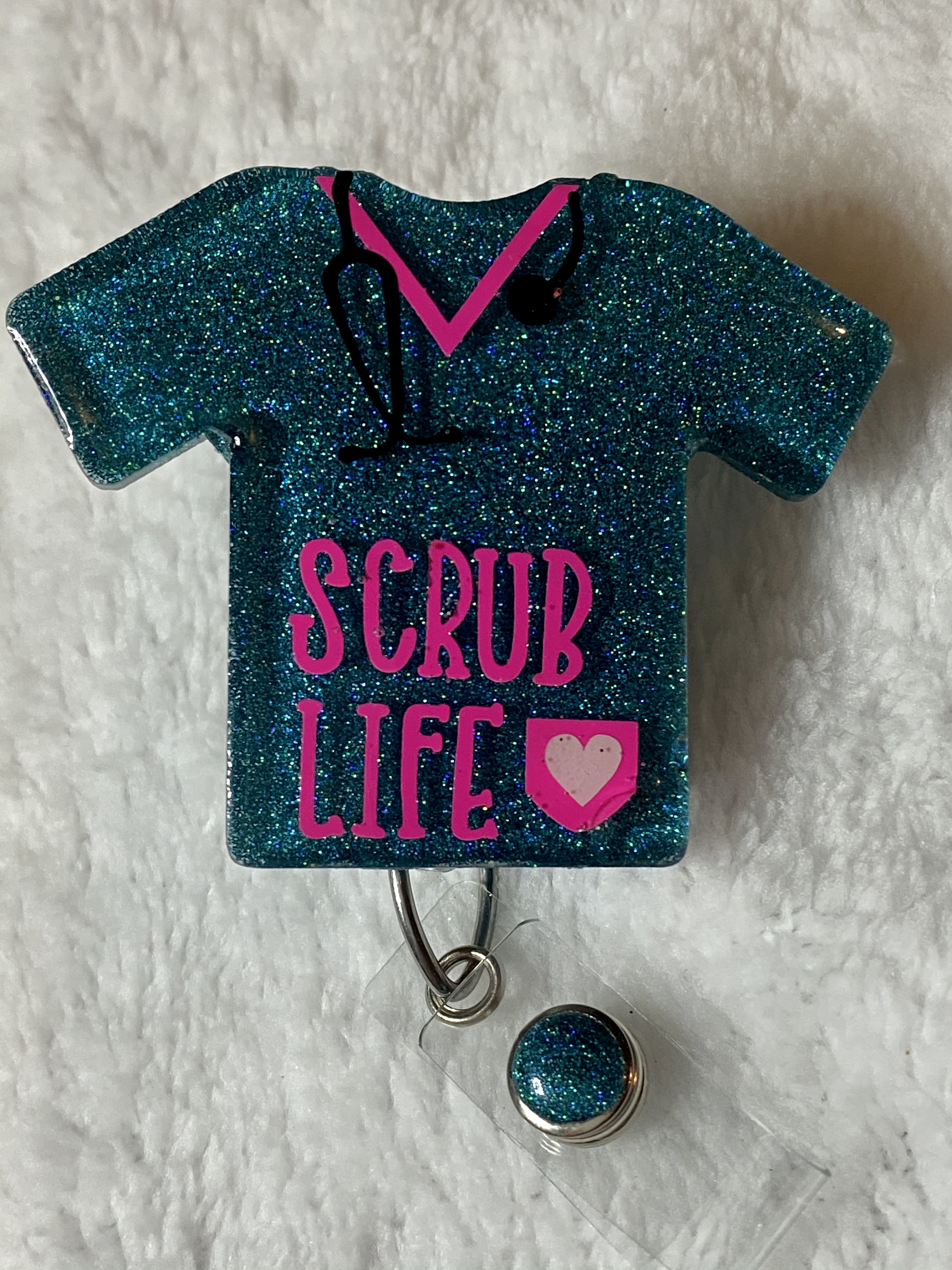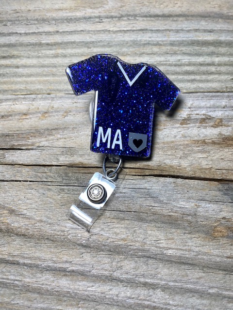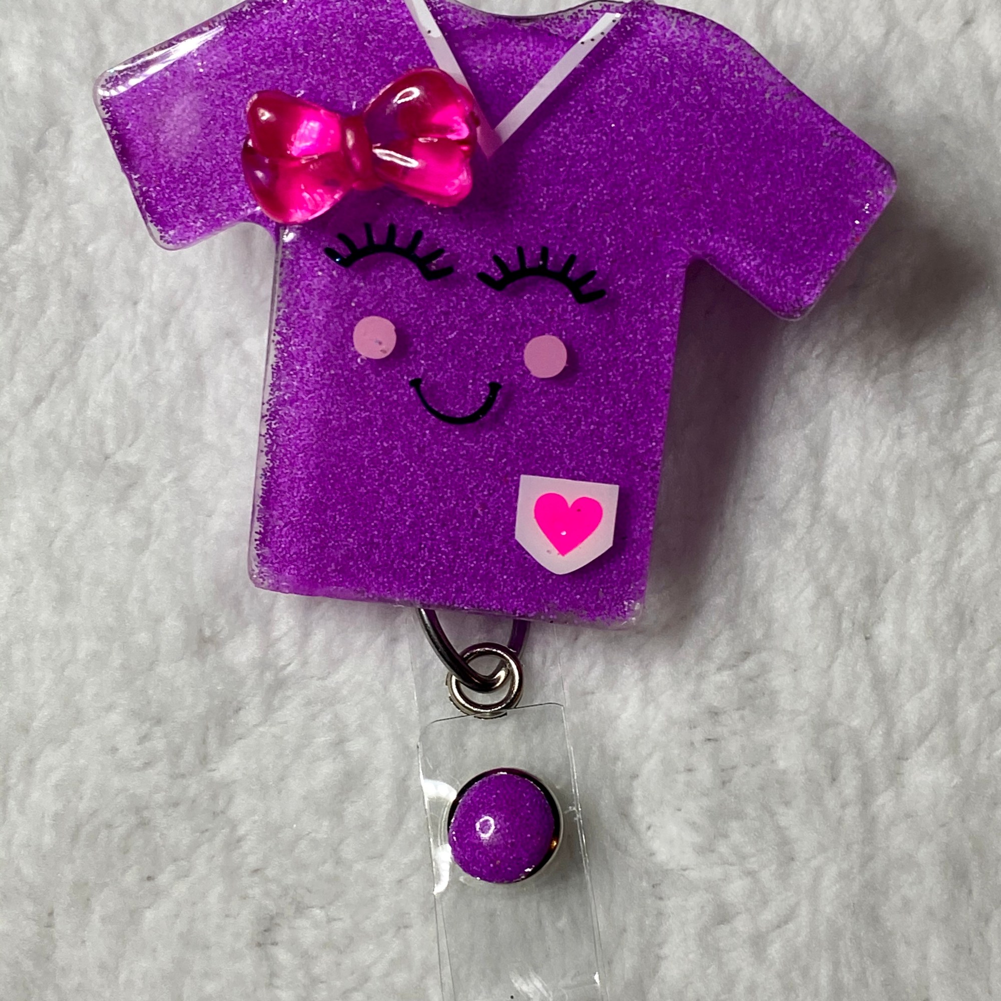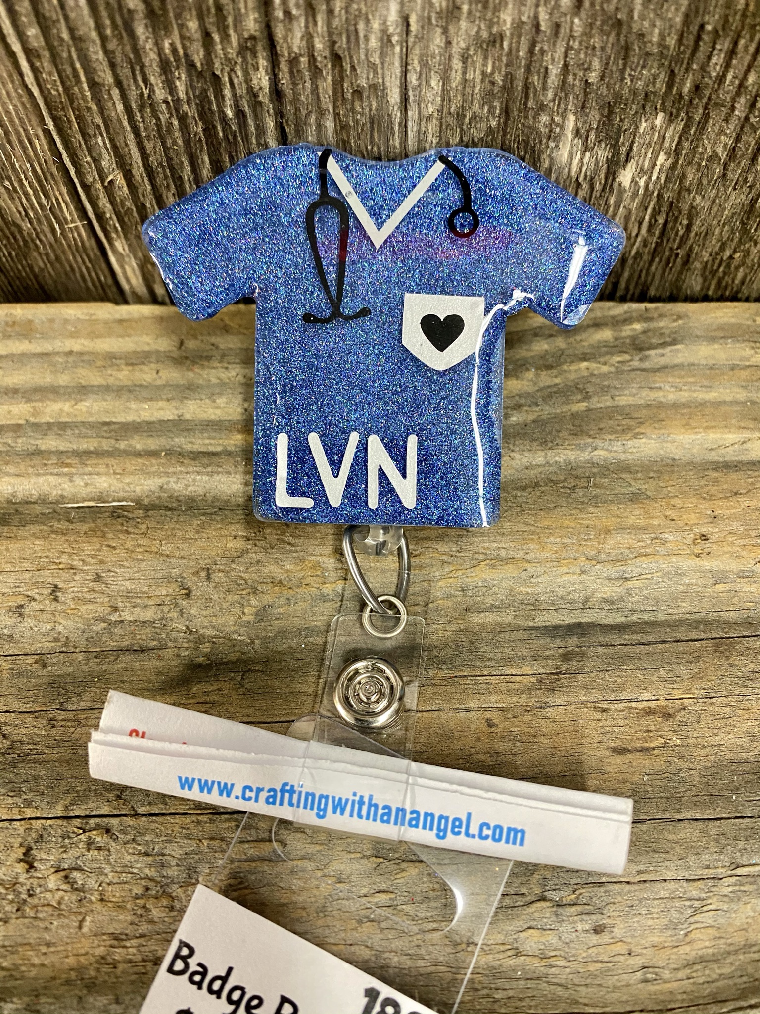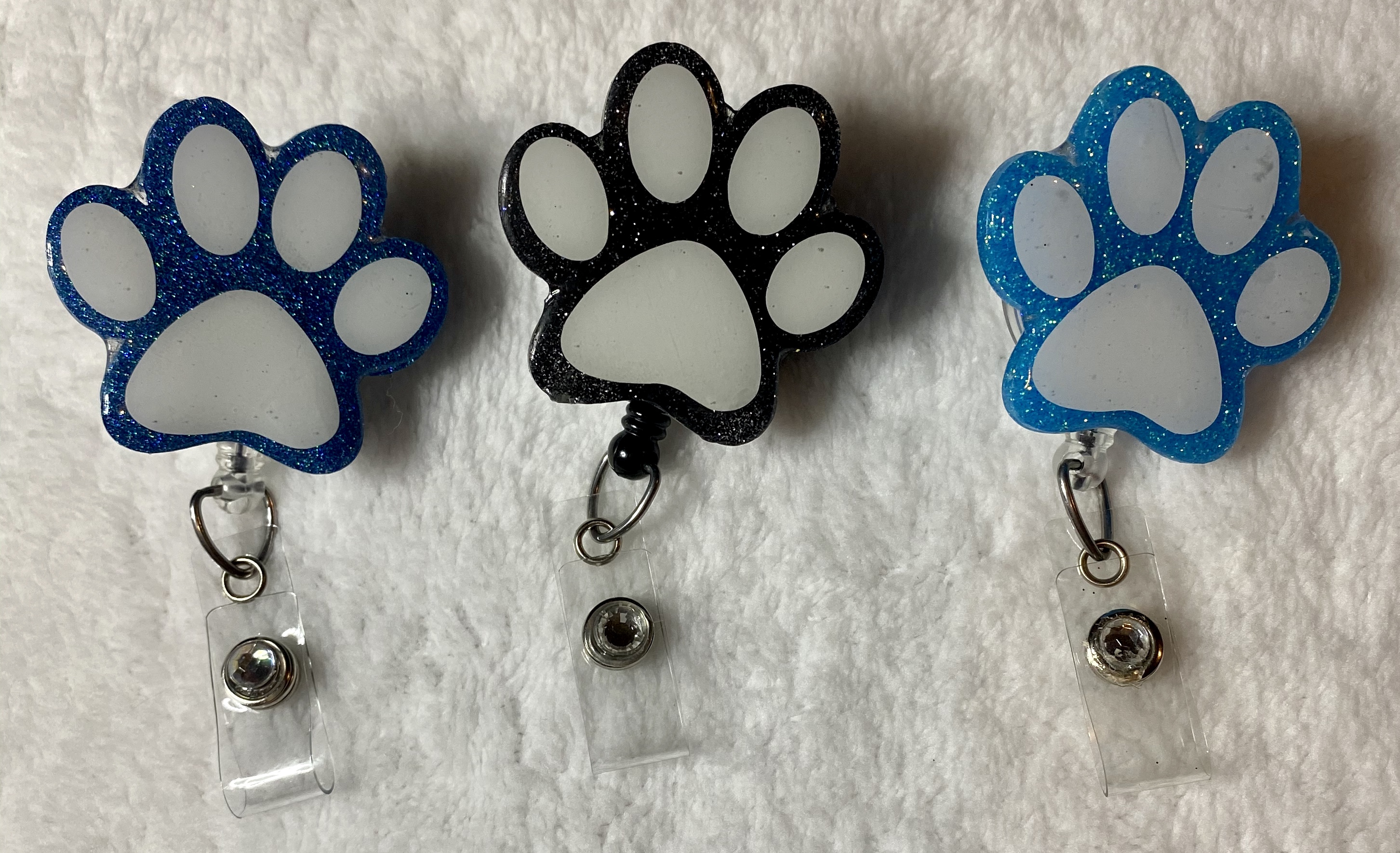 We offer all kinds of fun themes that includes holidays, sports, hobbies, and almost most medical fields. You can choose from many beautiful glitters or non glitter (powder) colors. The badge reels we use are the swivel retractable alligator clip reel and they are suppose to last up to 100,000+ pulls. You have the option to have them be interchangeable (with a low profile heavy duty Velcro) or to have them be permanently attached with E6000 adhesive to the reel.