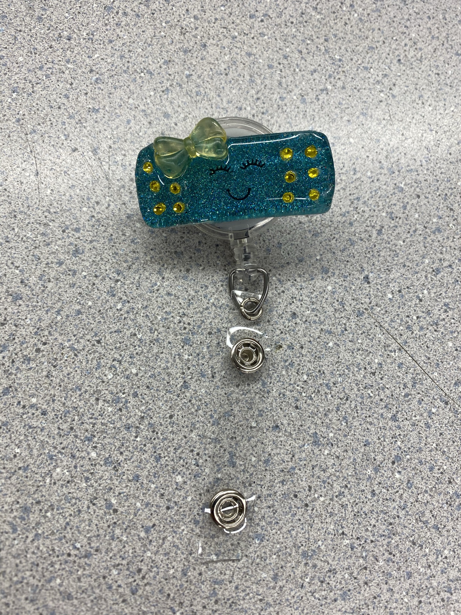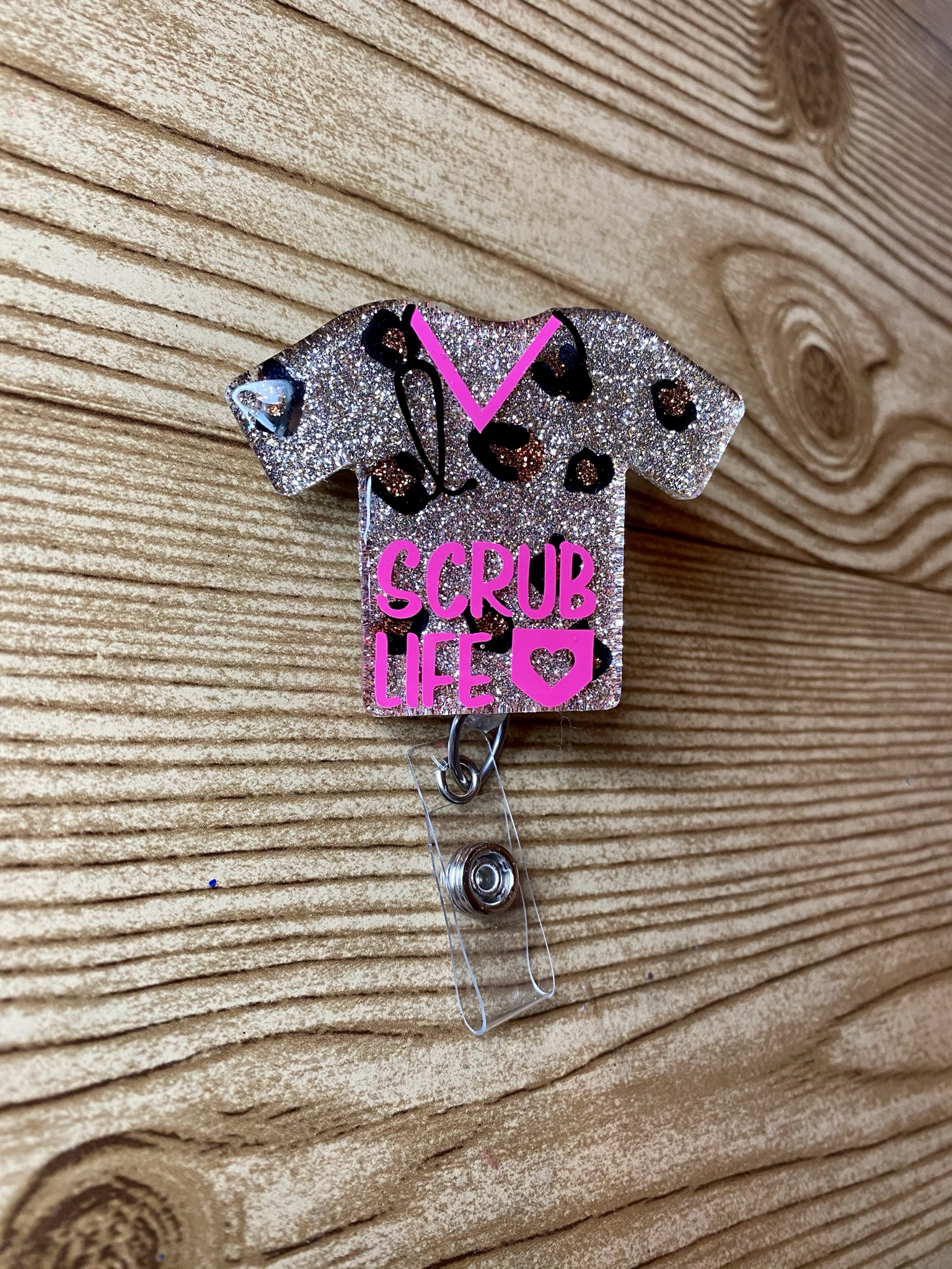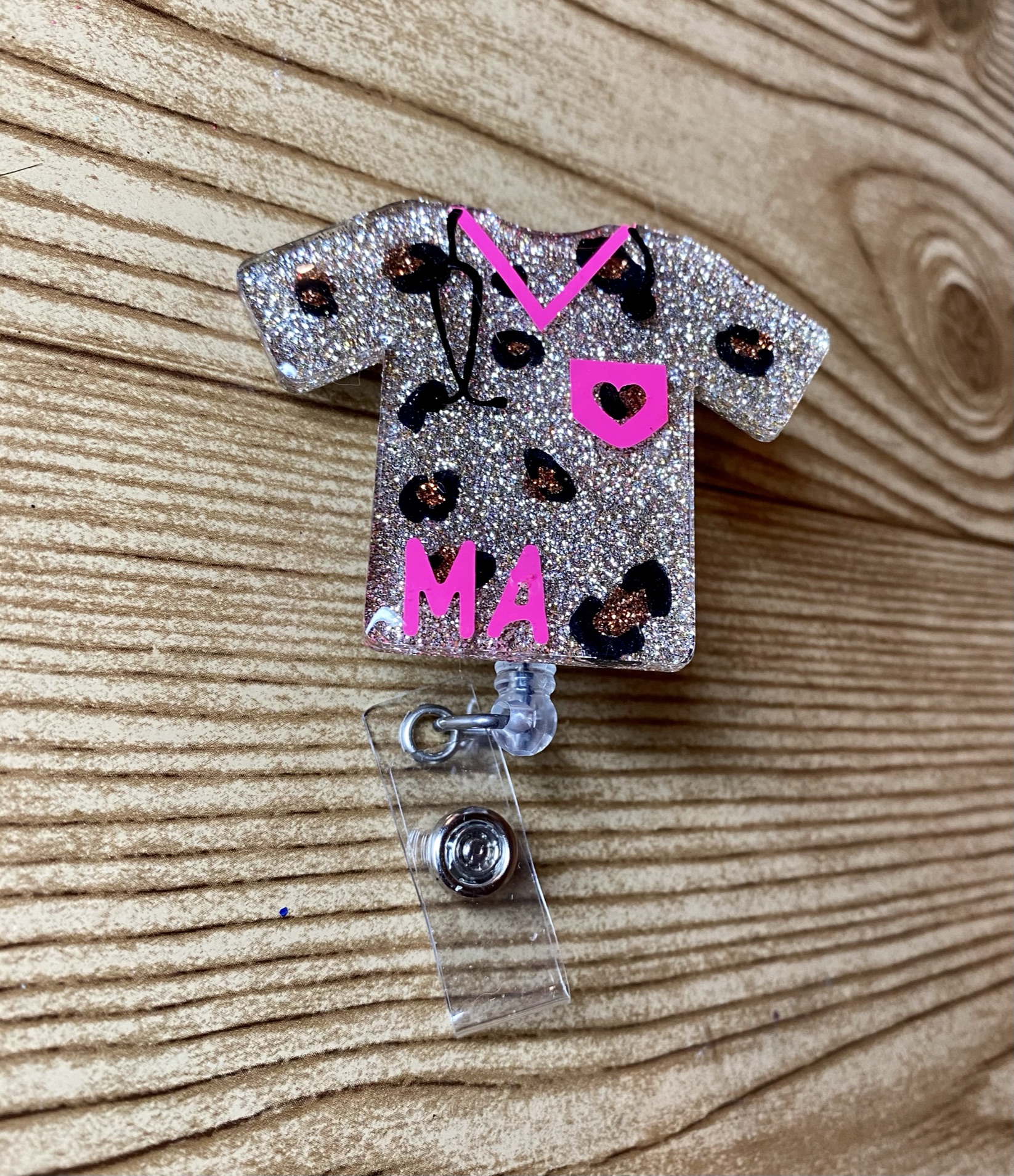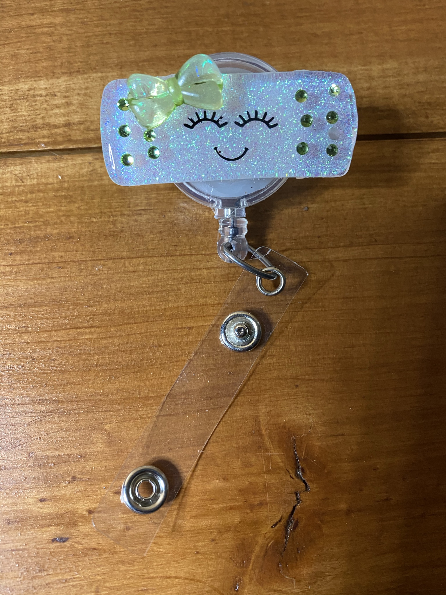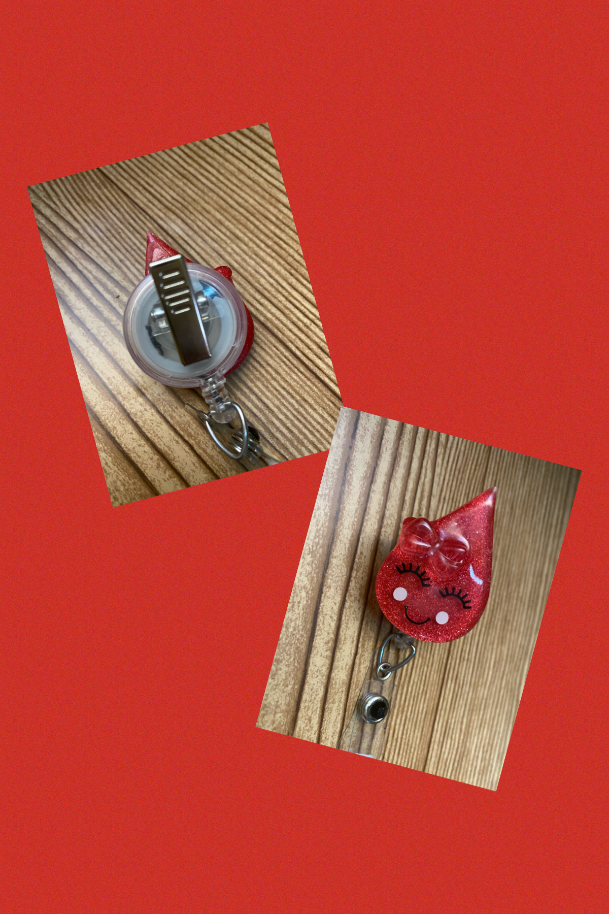 We offer all kinds of fun themes that includes holidays, sports, hobbies, and almost most medical fields. You can choose from many beautiful glitters or non glitter (powder) colors. The badge reels we use are the swivel retractable alligator clip reel and they are suppose to last up to 100,000+ pulls. You have the option to have them be interchangeable (with a low profile heavy duty Velcro) or to have them be permanently attached with E6000 adhesive to the reel.