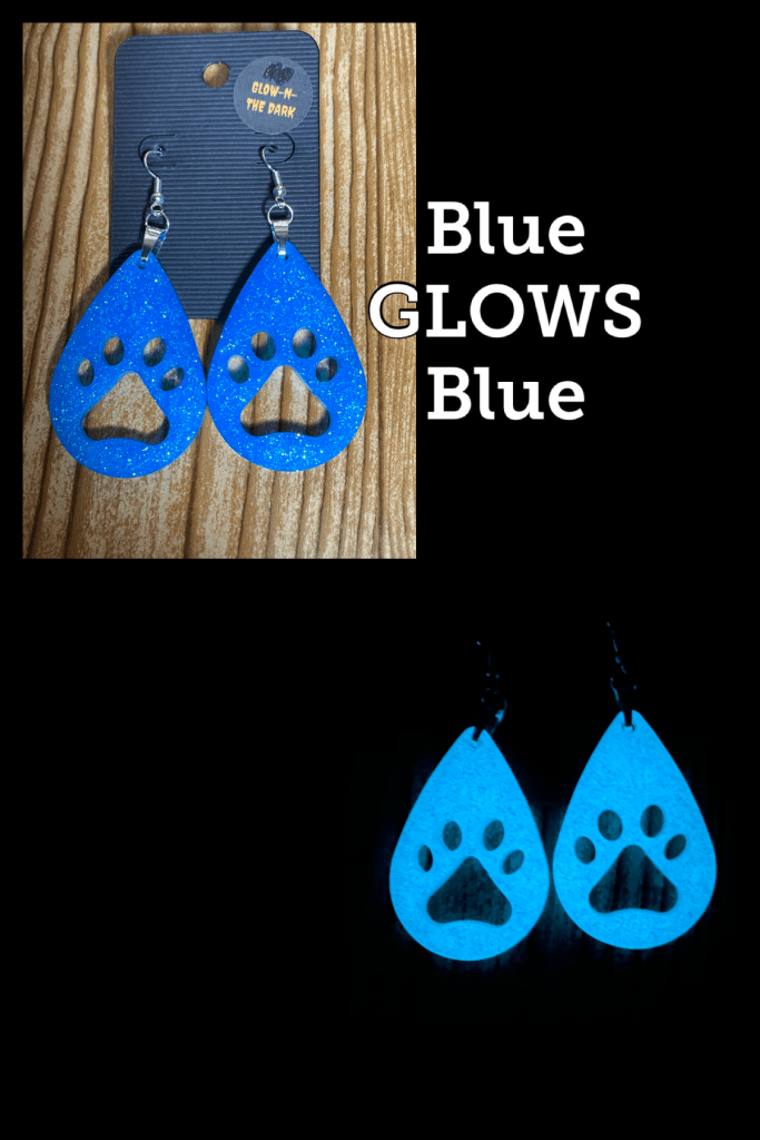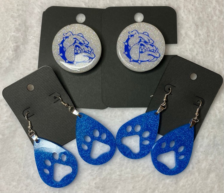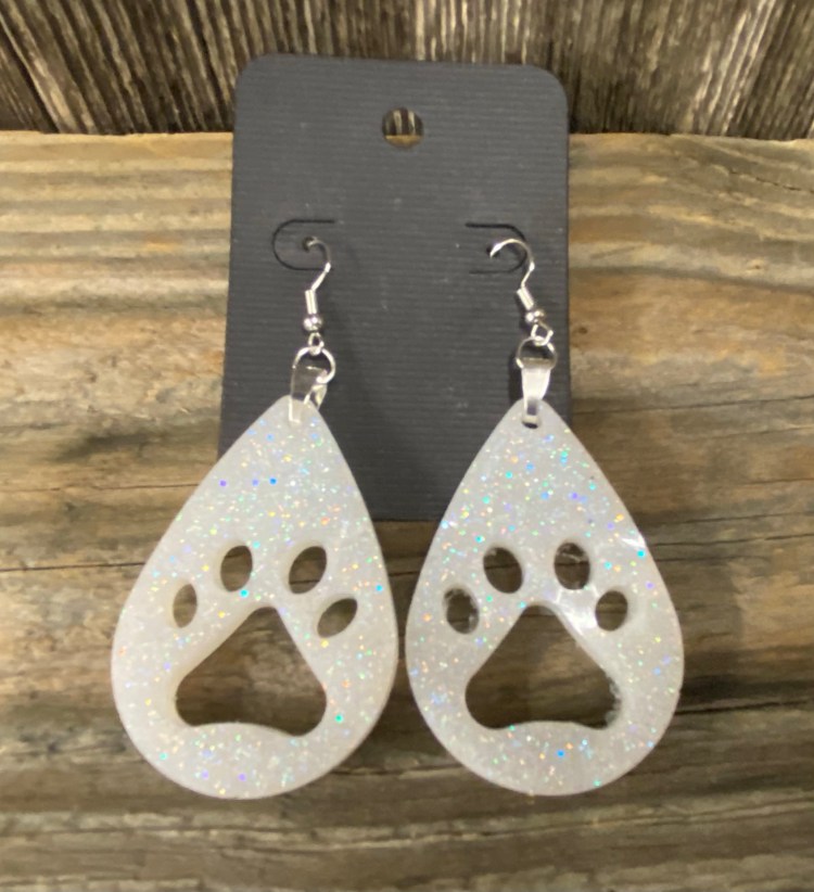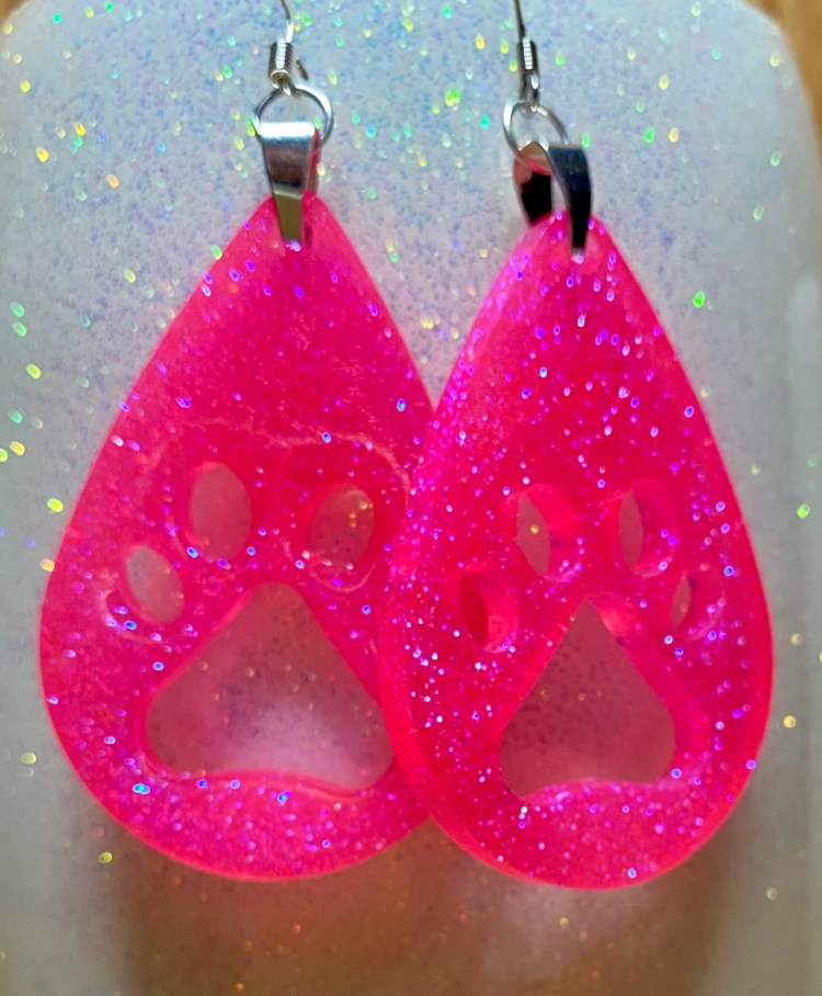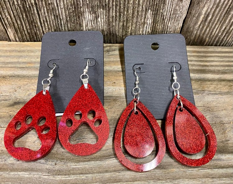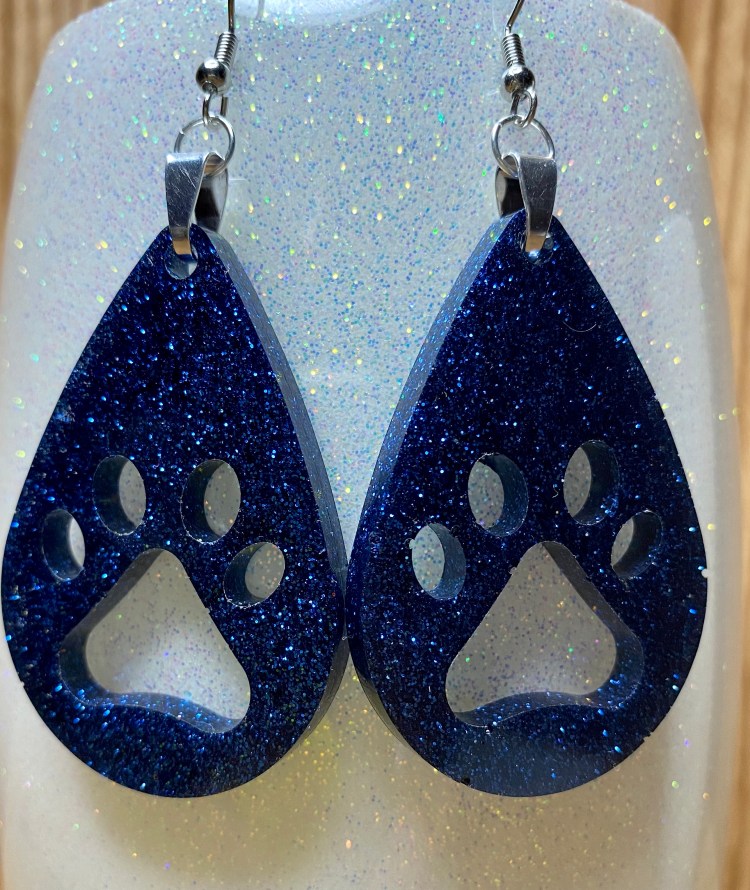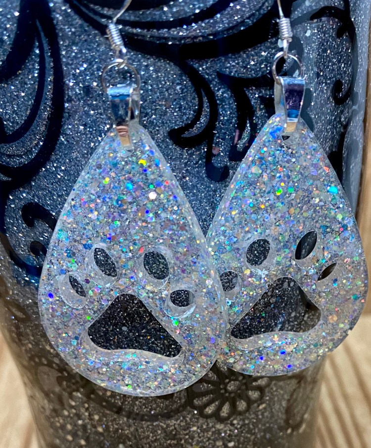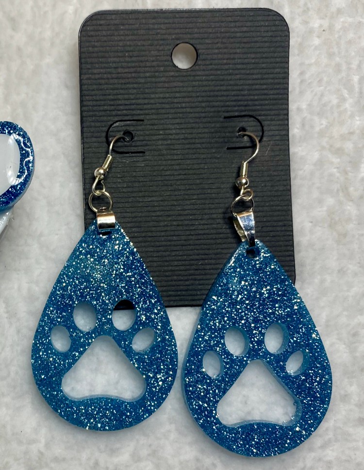 The teardrop earrings below we make from the same 2 part CCDIY resin we make our tumbler and pop sockets with. They are VERY light weight. If we don’t have a color you are looking for already made go to the PRODUCTS tab above, click and scroll to the bottom of the list and click on the glitter colors tab and there you will find many different colors to choose from.