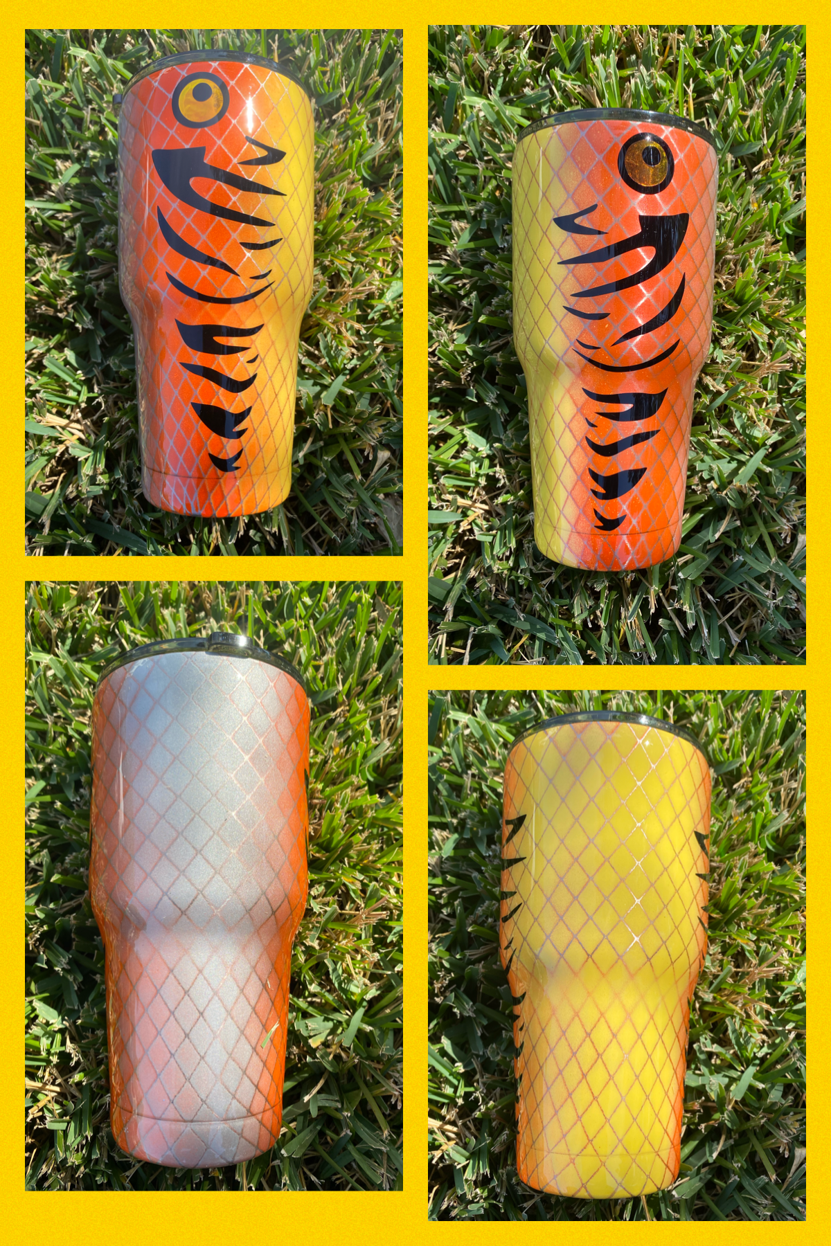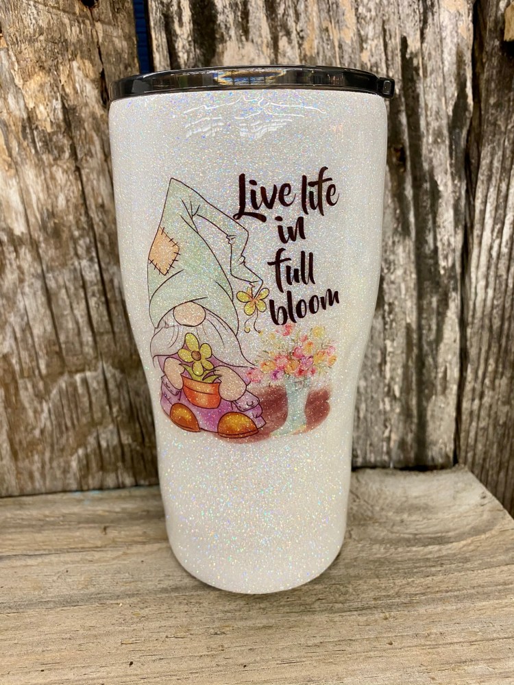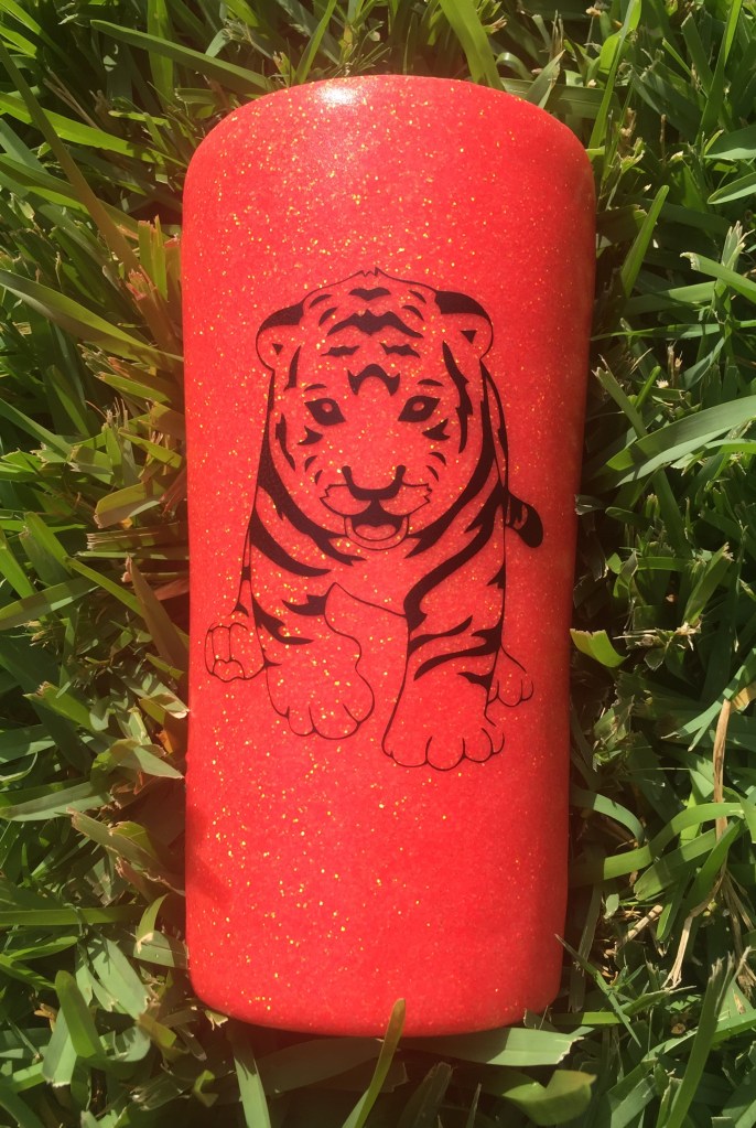 We use a 2 part resin, from “Counter Culture DIY“ that produces a crystal-clear, glass-like finish PLUS it has a UV protectant that protects it from yellowing. This resin is VOC-free and FDA Compliant and complies with FDA 21 CFR 175.300 (Safe to drink out off). It also has a heat resistant up to 500 degrees! Perfect for those HOT summer days when you accidently leave your new tumbler in your car or truck. Not recommended to ever leave in a HOT car or truck but most likely will not warp!